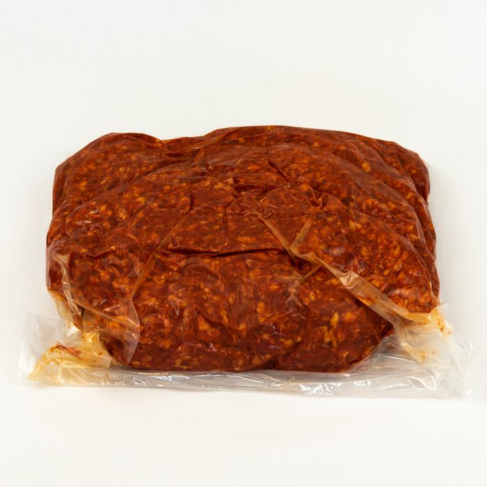 5kg bag chorizo mince, with hot paprika. Can be packed down and frozen.