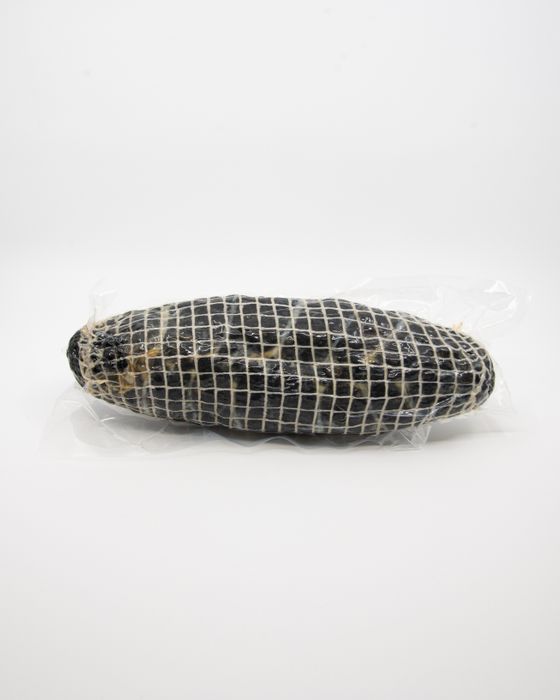 Pork based salami with hand cut fat and whole muscle, Italian squid ink and truffle paste, hung for 3-4 months. This is Saison's best seller - cut thinly and enjoy the stained glass effect.