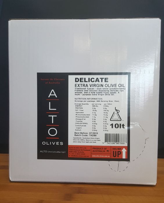 The delicate oil is made is made with a blend of olives which may include Frantoio, Leccino, Koroneiki, Manzanilla and Barnea. The style is mild flavoured fruit characters with subtle pungency. Delicate floral and ripe fruit aromas. Ripe fruit and soft grassy characterson the palate matched with mild bitterness and pungency, and a fresh clean finish.